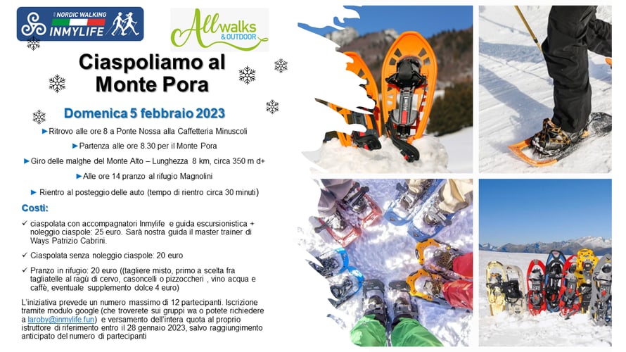 Iniziativa riservata ai soci della ASD NW INMYLIFE con certificato medico in corso di validità.