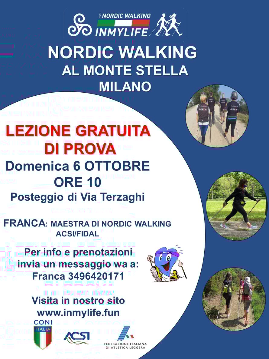 Ore 10:00 Nordic Walking benessere- MILANO Parco del Monte Stella. Istruttrice Franca